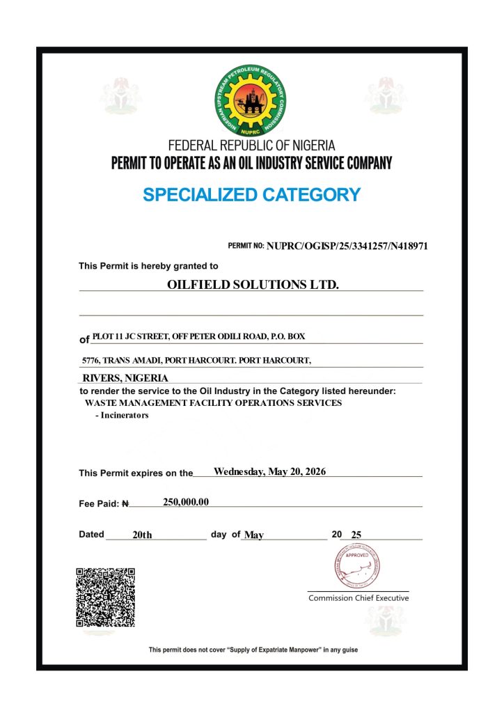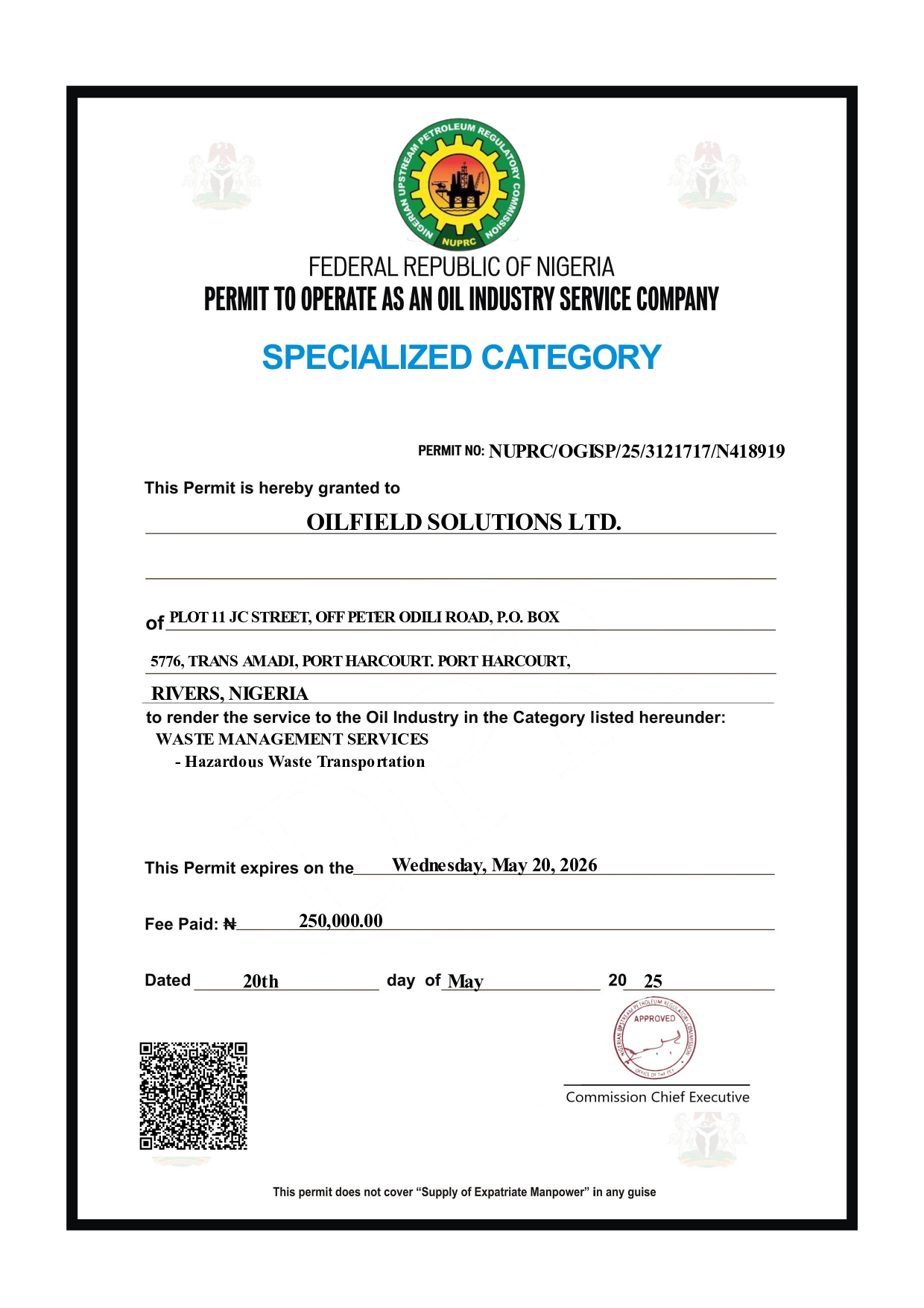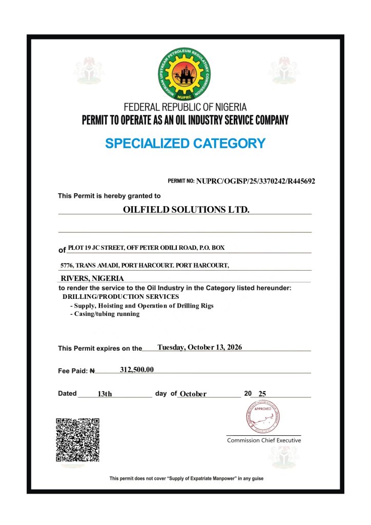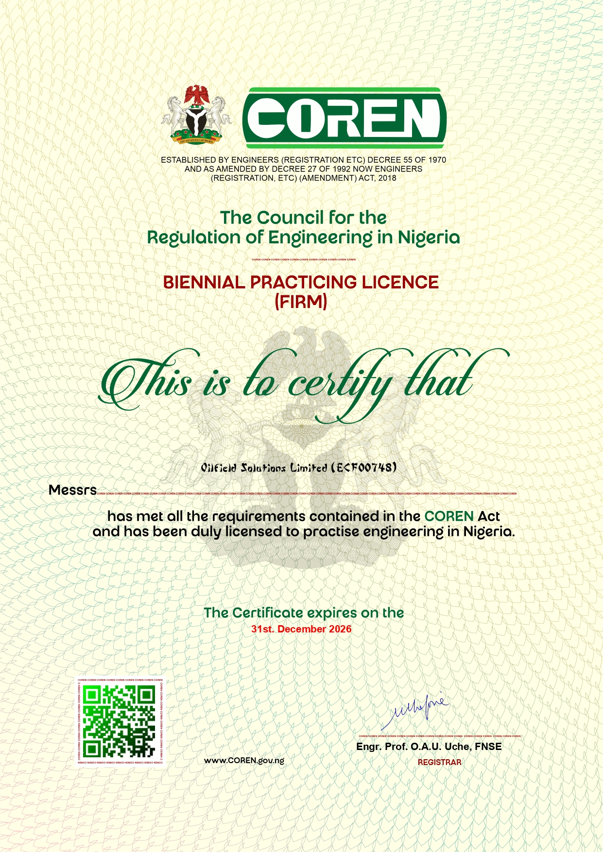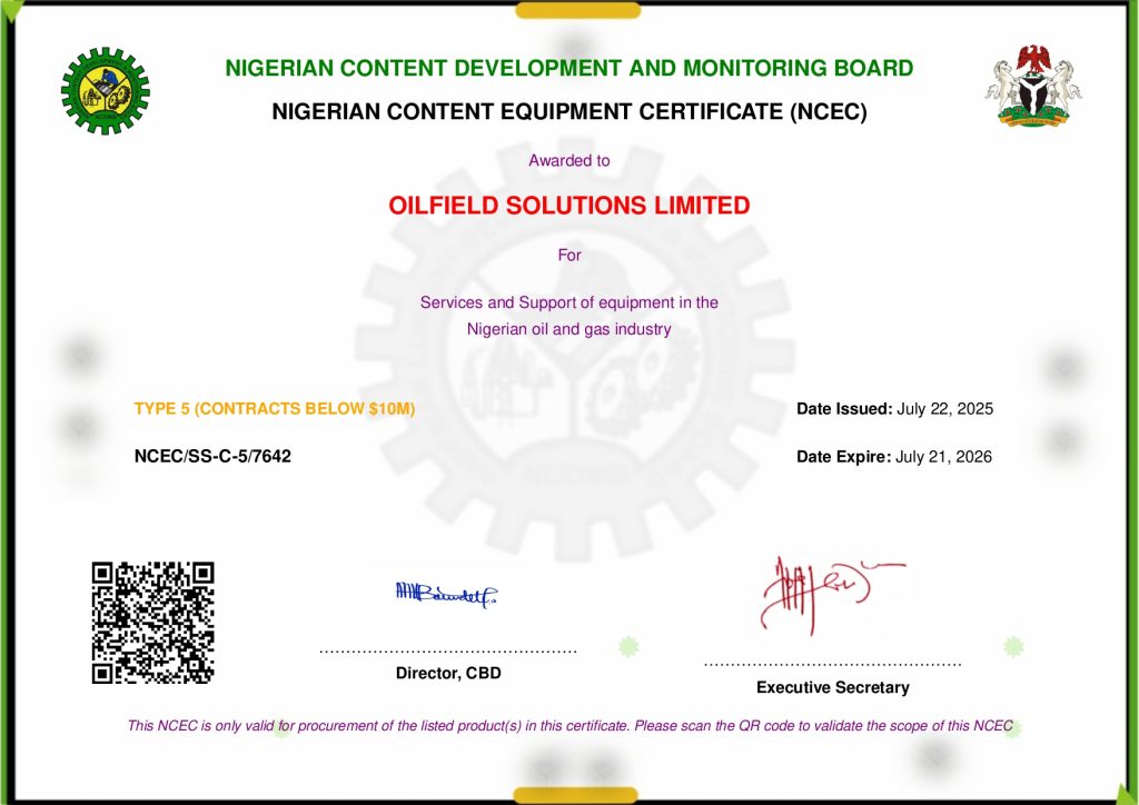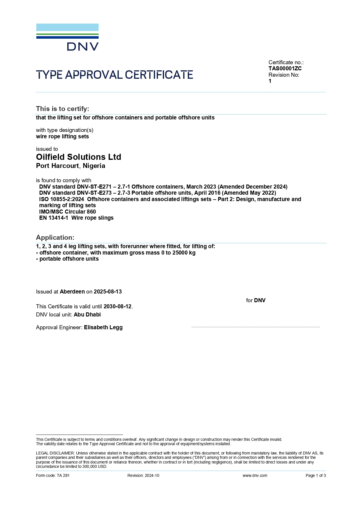 Oilfield Solutions Ltd is committed to supplying Lifting gears, manpower supply and general lifting solutions that meet the requirement of ISO 9001:2015.